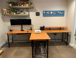 Part of the old desk was cut to make a small desk for Miranda - We are looking at small desk plans for her that will be a bit more stable. She is using my area more then hers so I have to be diligent in cleaning up each day when I leave my desk or she ruins my thing. Lovely right!